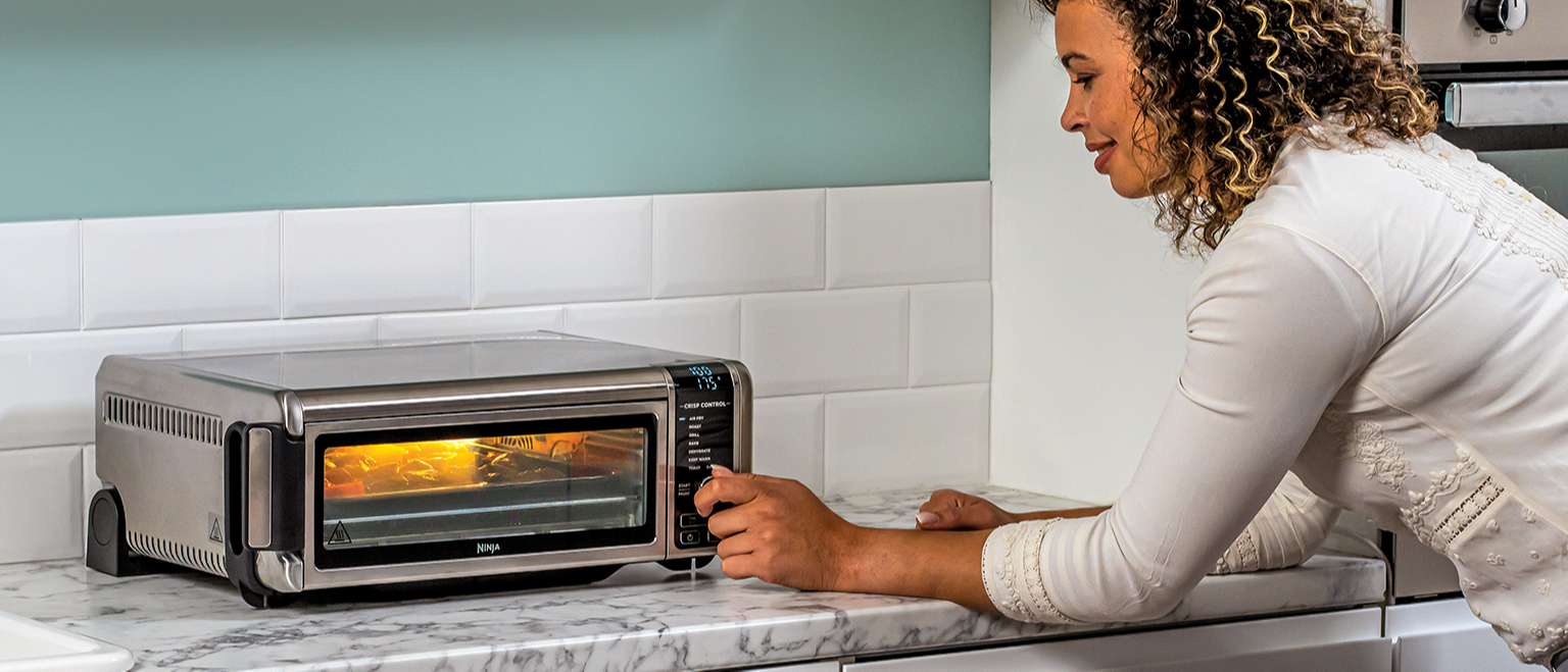 Электрическая печь Ninja мощностью 2400 Вт помогает быстро и легко готовить любимые блюда и экспериментировать с лучшим креативным рецептам.